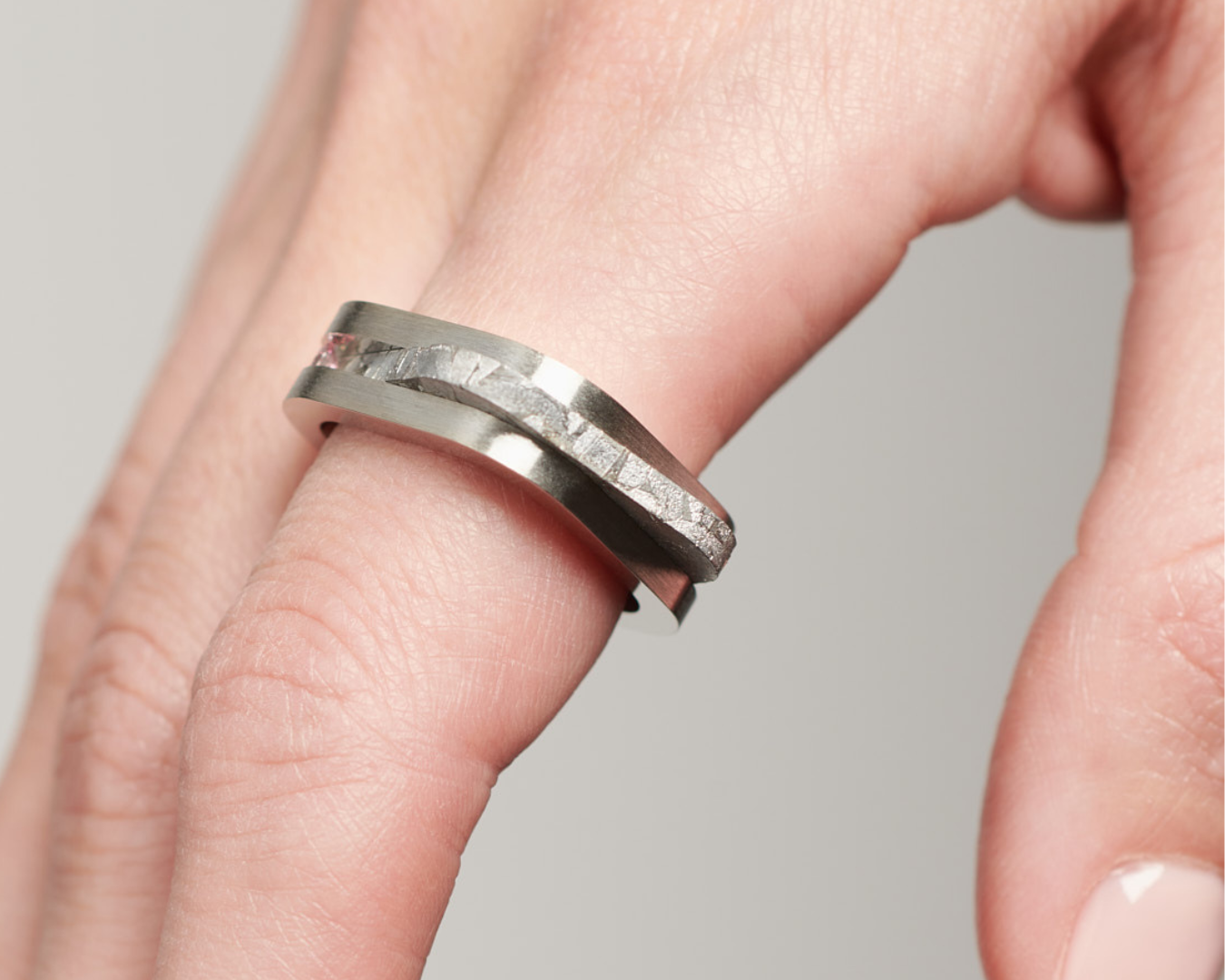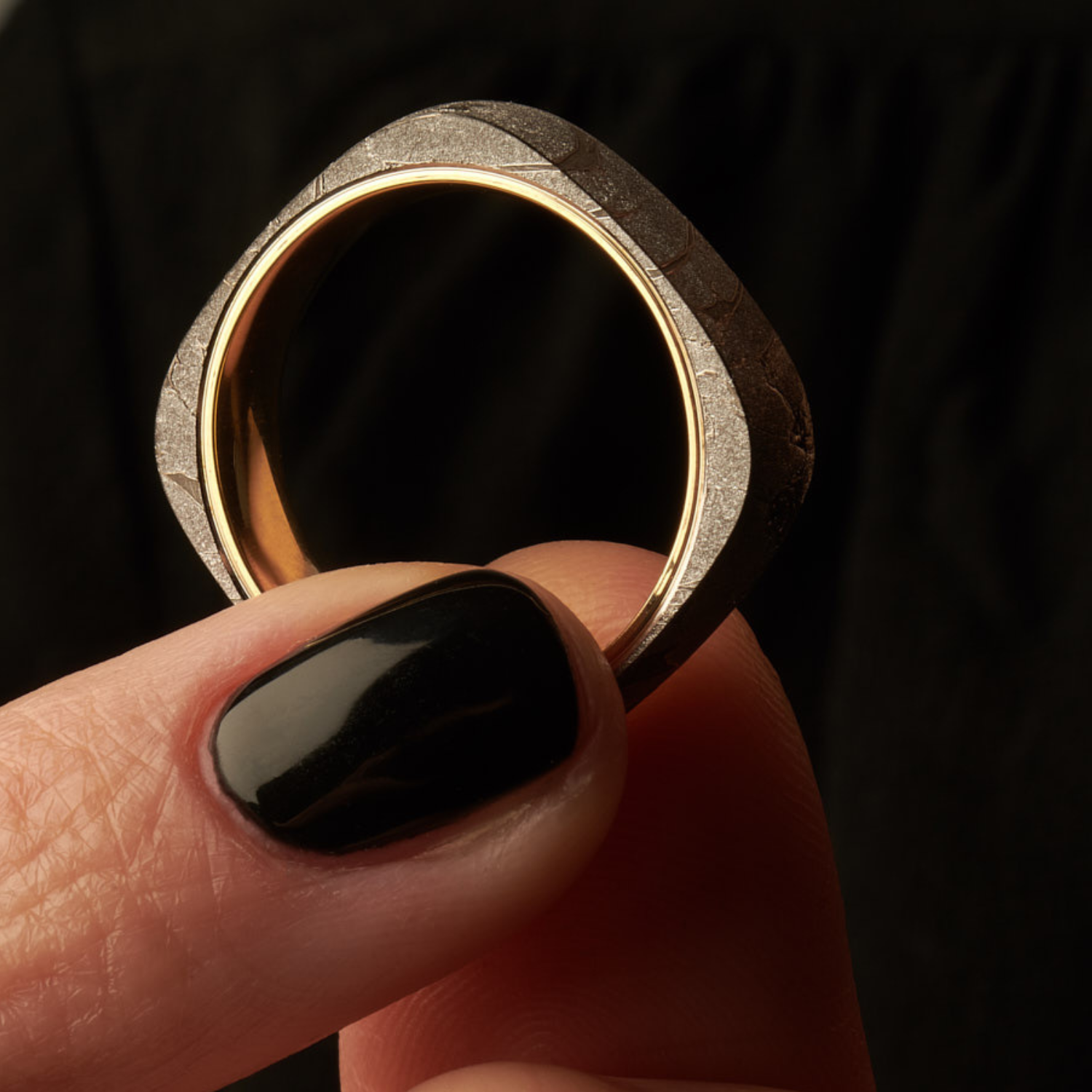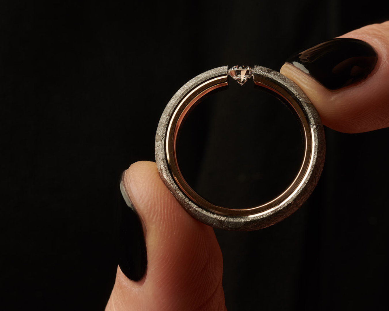 Martinelis & Co. brings you extraordinary wedding bands made from meteorite, one of the rarest substances you can find on Earth. Meteorites are not typical jewellery-making materials, but Martinelis gives it a fine touch of craftsmanship and adds a layer of gold inside the ring, binding precious gold with the gift from cosmos.