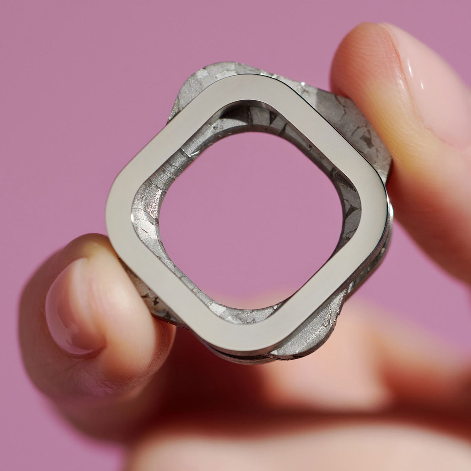 Seymchan, name of the meteorite that was found in Siberia in 1967, had gone through immense pressure and force when entering Earth, still the unique iron crystal pattern is not disrupted, showing the unique metal composite beyond our planet. Now, you can own a piece of treasure travelled from the endless sky, a ring that is blessed by the limitless space.