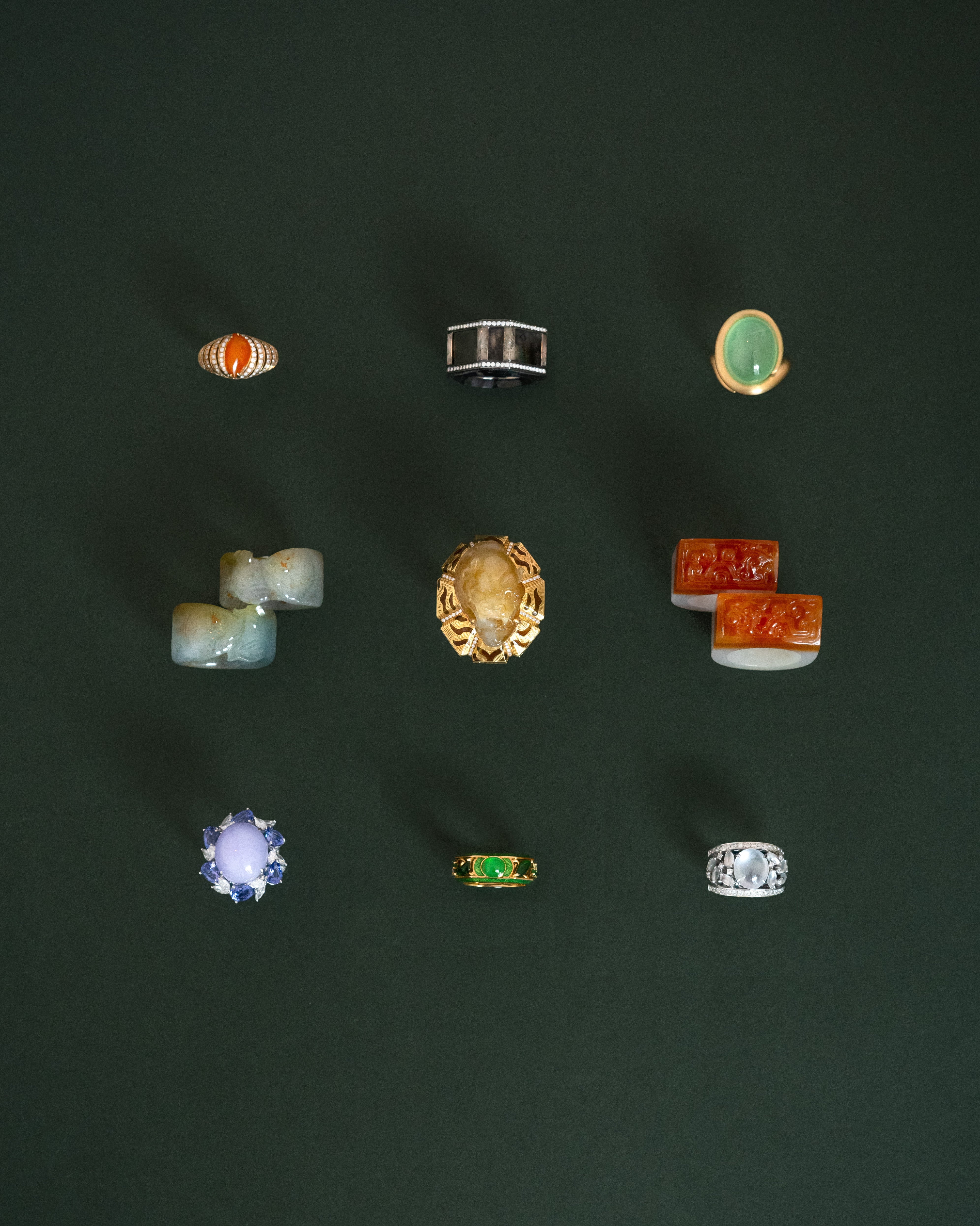 "100 Rings" celebrates the unique creative vision and exceptional craftsmanship of jewellery artisans. The chapter "Jadeite in a Hundred Forms" invites visitors to explore the rich diversity and distinctive charm of the precious gem, jadeite, through an array of beautifully crafted jade rings. This artistry has its roots in historical carving techniques of nephrite, adapted to jadeite's unique colour and hardness. Over generations, artisans and designers from various fields have refined these techniques, gradually imbuing them with significant cultural meaning and unique stylistic elements.