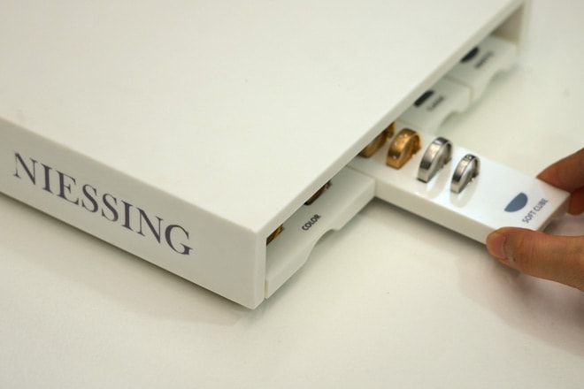 Niessing 其中一個最大的賣點,是顏色的選擇,連最新Solaris的加入,Niessing 一共提供13種顏色以供選擇。客人也可以自己併合顏色。無論是側面的分色還是正面的拼合,Niessing均透過Sintering技術把不同顏色戒指組合在一起,永遠不會褪色。一般而言,不同顏色的價格不一:併色和特別色戒指的價錢也因技術含量關係價格稍高。如果你想要更深入了解Niessing的顏色,可以按下面按鈕連結去到我們介紹Niessing顏色的專頁。