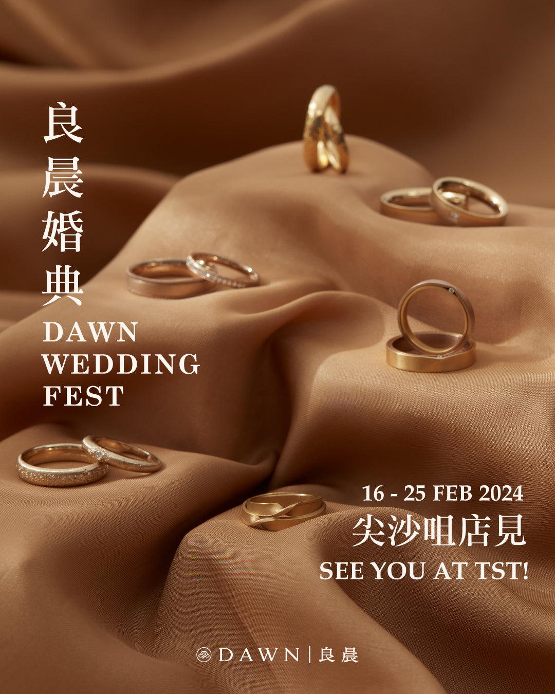 From February 16th to 25th, don’t miss the Dawn In-house Wedding Fair held at Tsim Sha Tsui concept store! During this period, in addition to special discounts on a wide range of wedding rings and jewellery, there will also be an on-site jewellery workshop where couples can experience making a sterling silver commemorative bracelet to celebrate the significant milestone of ordering their wedding rings.