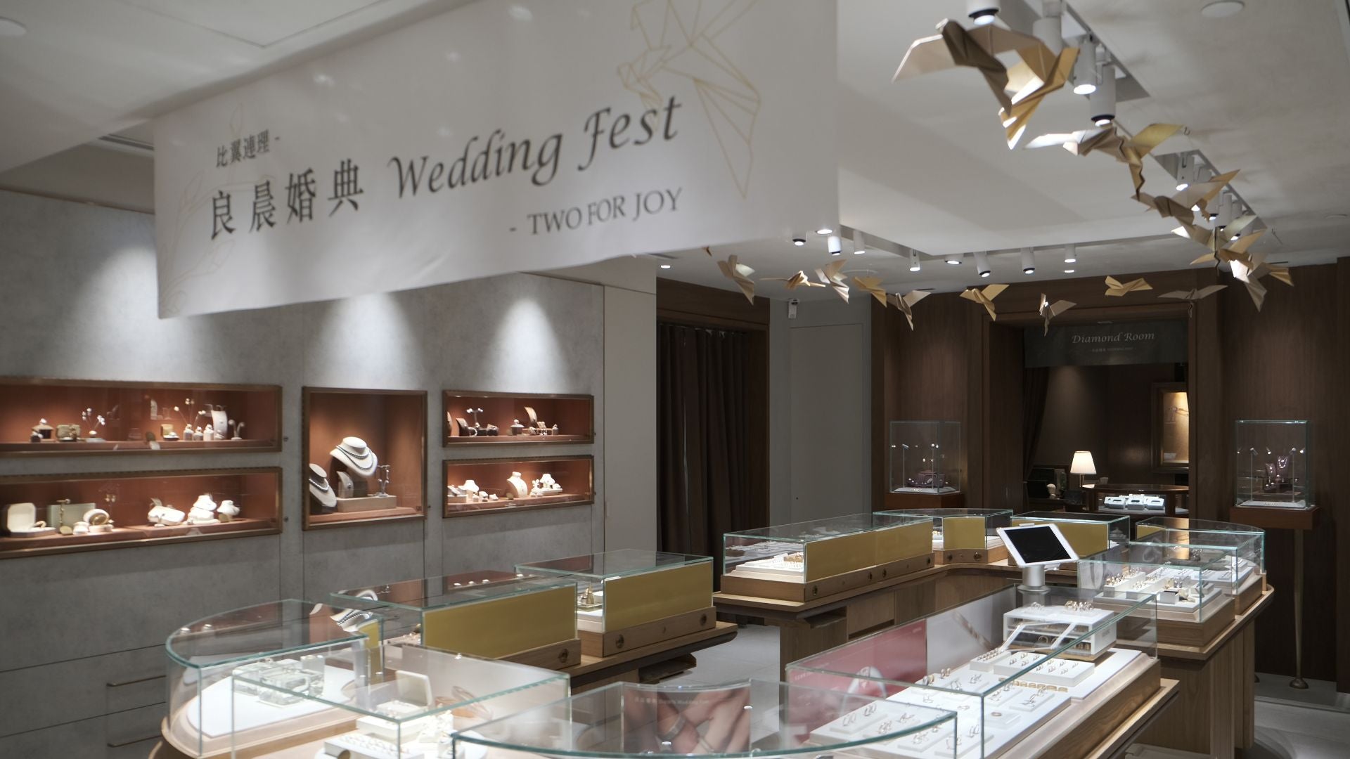 The theme of this wedding exhibition is ”Two For Joy,“ inspired by the traditional chinese verse ”In the heavens, we wish to be birds with intertwined wings; on earth, we wish to be branches that grow together,“ symbolizing the commitment of a couple in love. Dawn Jewelry has specially decorated the store as a ”Crafts Forest,“ where lovebirds, intertwined branches, and tool elves can witness the ceremony of selecting wedding jewelry. Couples who complete the ceremony will have the opportunity to experience the ”Crafts Forest Goldsmith Workshop“ and create a precious commemorative bracelet.