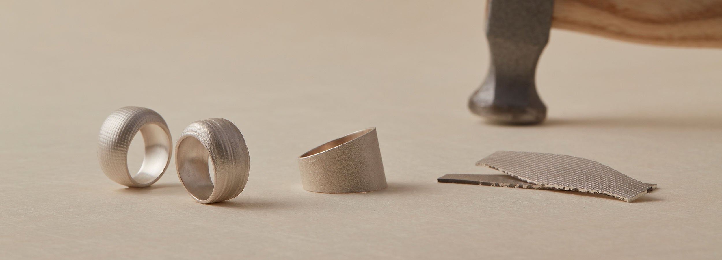 Workshop: Led by Hugo, the jewellery workshop embraces the concept of minimalistic aesthetics. Starting with creating a hammered round ring, participants will learn basic goldsmith techniques and be guided in creating various types of jewellery, including rings, bracelets, earrings, and more. The workshop combines creativity and foundational craftsmanship, allowing participants to add textures and patterns to metals using everyday tools and create three-dimensional shaped jewellery.