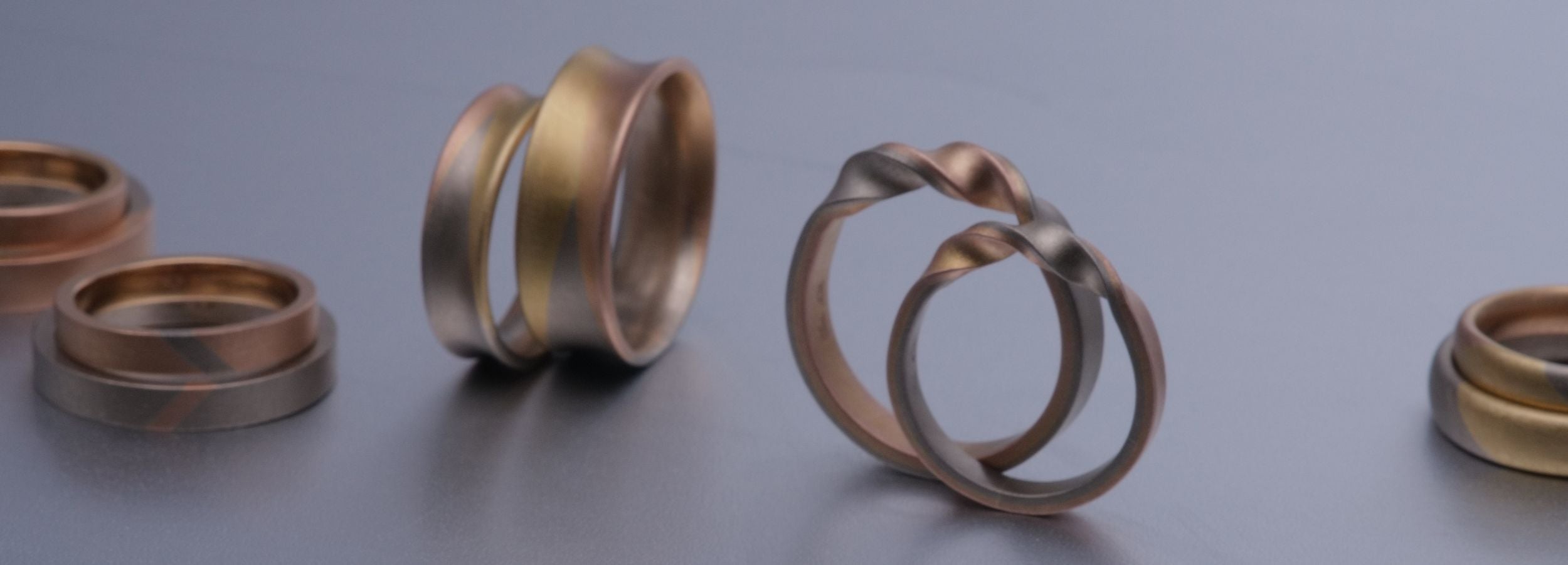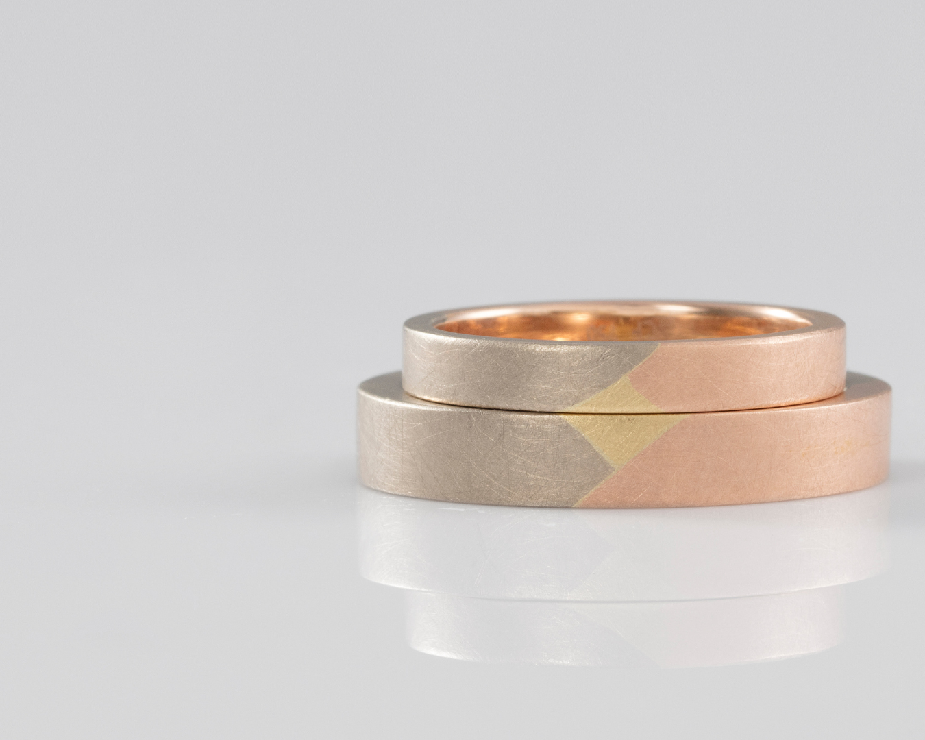 Hugo是一位來自香港的珠寶設計師,多年來一直活躍於這個領域。通過將幾何形狀融入他的作品,每一個戒指在顏色比例上都有著完美的平衡。每對婚戒都可以結合在一起,形成一個象徵著佩戴者和諧完整的圖案。