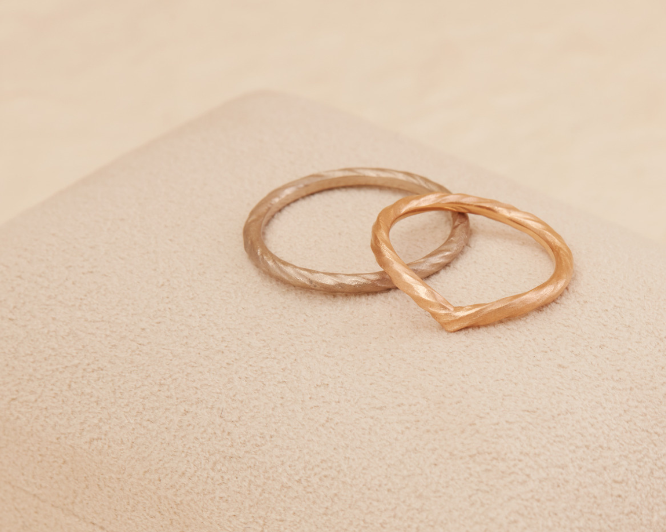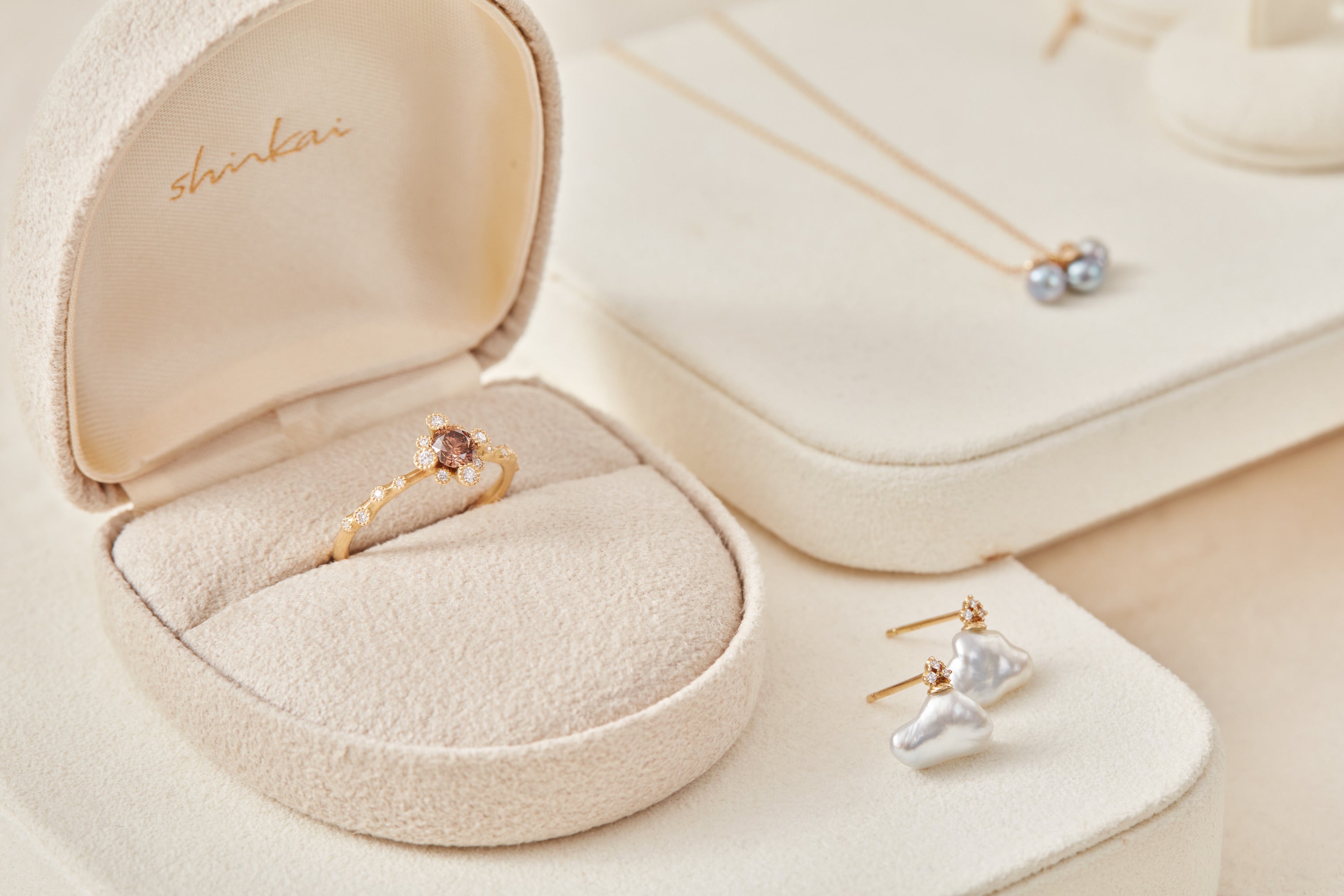 “Shinkai”在日語中意為“Shinkai”,象徵著珠寶的價值和美麗,反映了品牌對材料和工藝的極致追求。Shinkai珠寶的設計、形狀和紋理都受到自然的啟發,展現了大自然的力量和美麗。婚戒通過鑿刻技術手工雕刻,創造出微妙而溫柔的紋理,賦予戒指精緻的細節和溫暖。