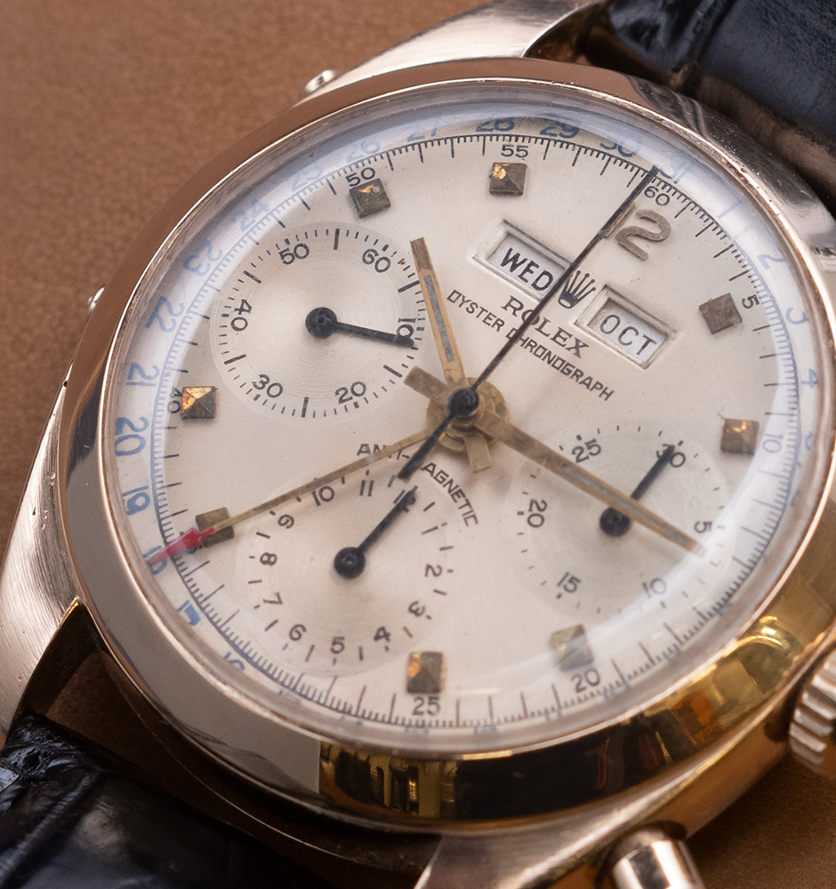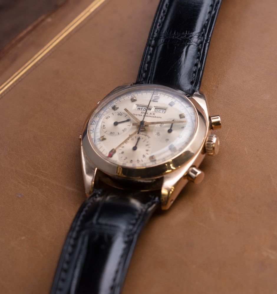 這是一款 Rolex Dato-Compax 有Chronograph 及日月星期的 Triple Calendar。它於1940-60 年代生產。當時勞力士找了滑雪冠軍 Sean Claude Killy 代言,因此這型號的錶也被稱為 Killy Rolex 。