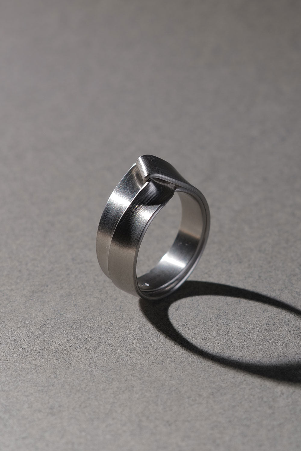 欣賞著戒指起伏的軀體,宛如聆聽管樂和弦樂合奏的表演:Leen Heyne 再次發揮金屬指揮家的技術,兩條充滿紋路的寬大旋律平衡合奏,交疊錯落有致,記錄了合奏的和諧。聽完一曲後,懵然未覺醒來時,原來根本是一帶金屬的變奏!